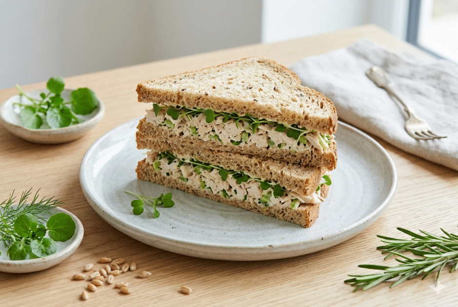 Distribua o frango desfiado sobre as fatias de pão. Acrescente a muçarela e feche formando os sanduíches. Se desejar, corte ao meio para facilitar o consumo e o armazenamento.